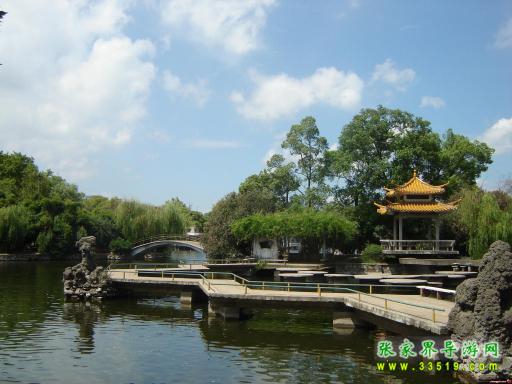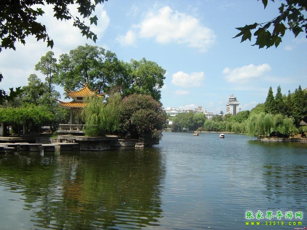 湖內亭臺樓閣,垂柳煙色,湖岸綠色蔥蘢,鮮花妖艷,素有“妙絕 西湖勝虎丘”的美譽。主要景點有發源殿、岸花亭、雙壁坊、夕照亭等。