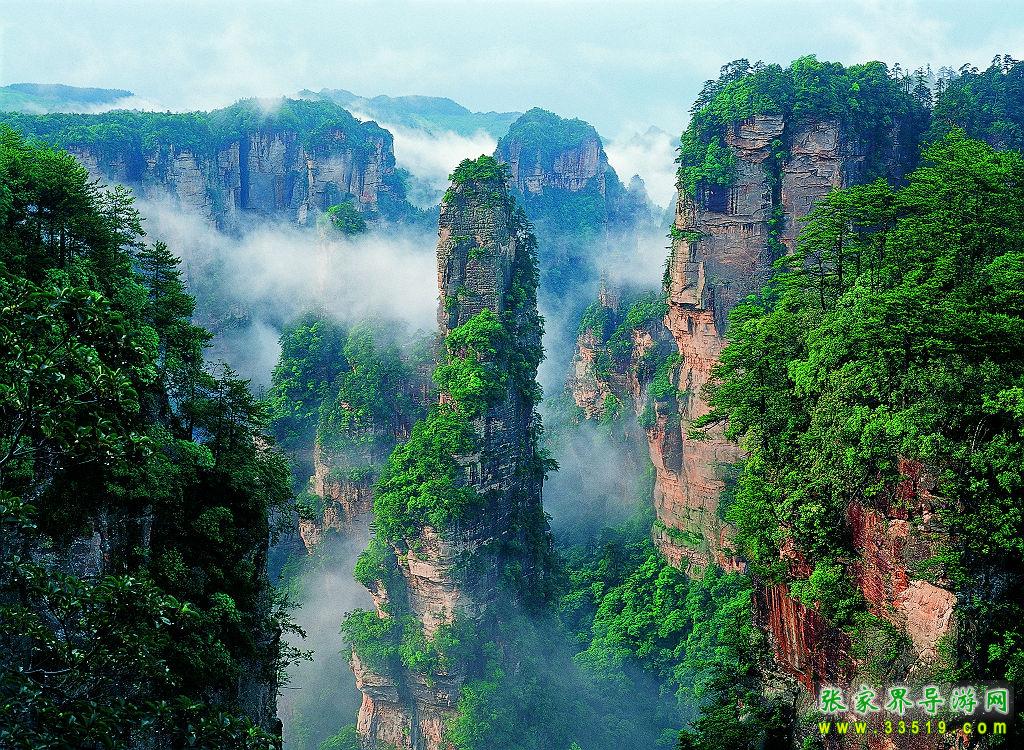 張家界國(guó)家森林公園位于湖南省西北部張家界市境內(nèi),是1982年由國(guó)務(wù)院委托國(guó)家計(jì)委批準(zhǔn)成立的中國(guó)第一個(gè)國(guó)家森林公園,1992年12月因奇特的石英砂巖大峰林被聯(lián)合國(guó)列入《世界自然遺產(chǎn)名錄》,2004年2月被列入世界地質(zhì)公園。公園自然風(fēng)光以峰稱奇、以谷顯幽、以林見秀。其間有奇峰3000多座,這些石峰如人如獸、如器如物,形象逼真,氣勢(shì)壯觀。峰間峽谷,溪流潺潺,濃蔭蔽日。有“三千奇峰,八百秀水”之美稱。公園不僅自然風(fēng)光壯美絕倫,而且森林植物和野生動(dòng)物資源極為豐富,森林覆蓋率達(dá)98%,是一座巨大的生物寶庫(kù)和天然氧吧,被稱為“自然博物館和天然植物園”。草木禽獸與奇山異水,同生共榮,形成完美的自然生態(tài)系統(tǒng)。