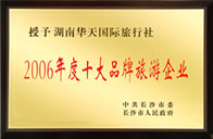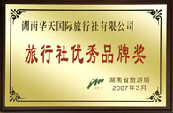 2007旅行社優秀品牌獎 湖南省旅游局 (2007.3)