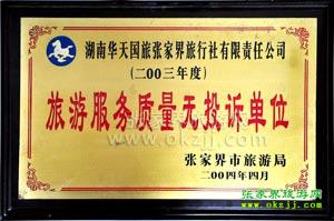 湖南省旅游市場開發工作先進單位 2004.2 湖南省旅游市場開發工作先進單位 |