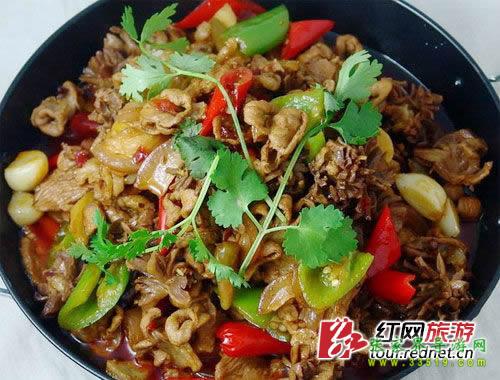 走在張家辦的大街小巷,幾乎沒有哪家餐館不張貼三下鍋的廣告,甚至好多餐館就是以“××三下鍋”來命名。于是,到過張家界的游客,即使沒有親自 品嘗過,也會對當地的“三下鍋”充滿好奇。其實,據說最初的張家界三下鍋是以臘肉、豆腐、蘿卜三道食材為原料的,也因此而得名。不過,經過這么多年發展, 如今的三下鍋早已面目一新,成為了純粹的火鍋,而且往往是配辣得生猛的湯料。或許正是這個原因,更加深了游客們對張家界三下鍋的印象。