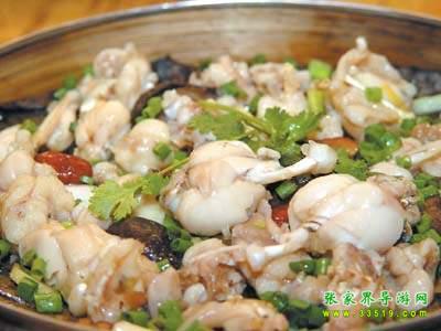 華南湍蛙,又名石蛙,當地山民俗稱“梆梆”,屬兩棲綱蛙科動物,它是捕捉水蛇的能手。華南湍蛙平常生活在溪流石潭中,有時晚上上岸活動。它與斑魚交配產子。華南湍蛙無論白天或黑夜,都能發出“梆梆”的叫聲,故俗名“梆梆”。華南湍蛙的肉十分細嫩鮮美,尤其燒湯,比雞湯還香甜。它營養豐富,是名貴食品之一,也是待客的上品。