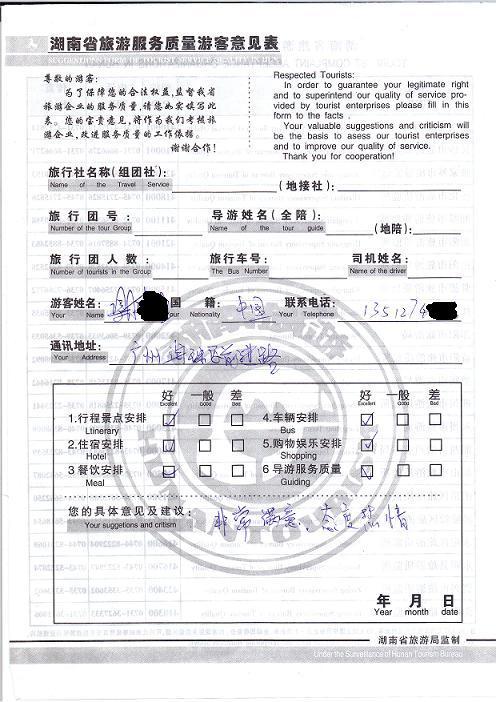 2011年3月23日謝先生旅游服務質量反饋:非常滿意,態度熱情