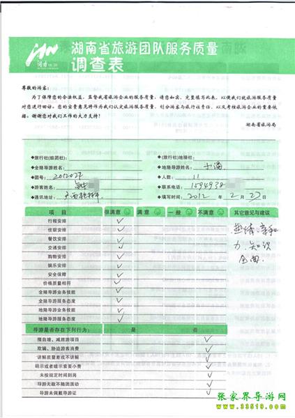 2012年2月27日鐘先生一行11人旅游質量反饋:熱情,有親和力,知識全面