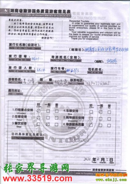 2010年4月5日香港呂先生張家界鳳凰旅游質量反饋