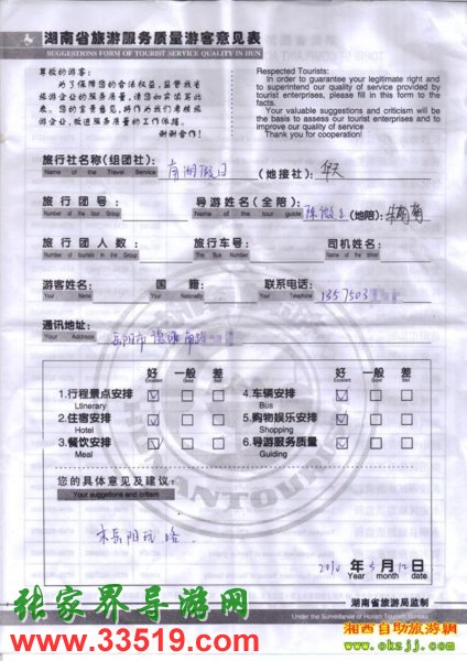 2010年5月12日岳陽南湖假日旅行社旅游質量反饋