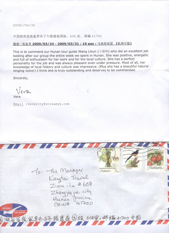本公司導游,“王莉坤”由于帶團期間出色的講解能力和高尚的人格魅力,贏得了游客們的高度評價。特發表揚信如下: