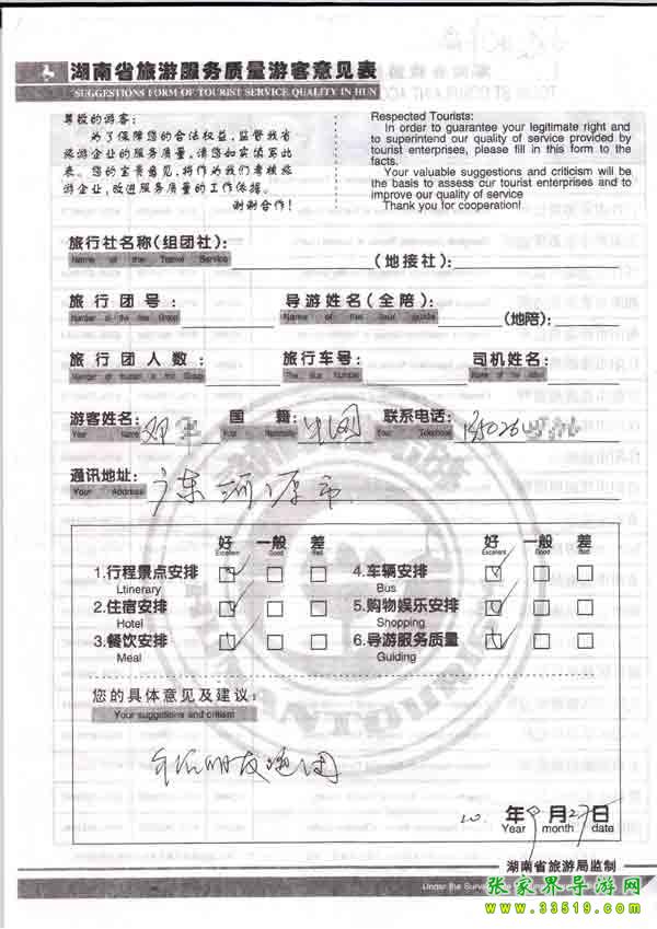 2010年9月27日廣州鄧先生旅游質量反饋:下次還介紹朋友過來