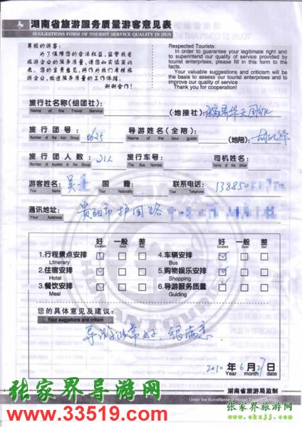 2010年6月27日貴陽吳先生一行21位旅游質量反饋