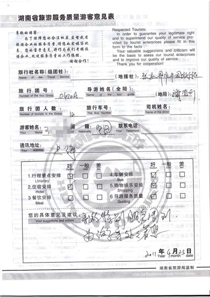 2011年4月23日王先生一行12人旅游質量反饋:為游客處處著想