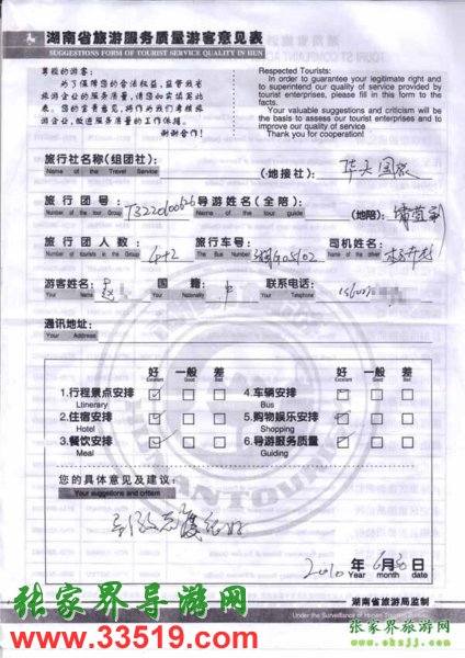2010年6月30內蒙趙先生一行4位旅游質量反饋
