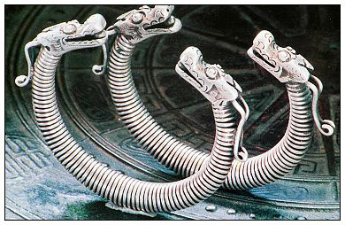 銀飾以其多樣的品種、奇美的造型和精巧的工藝,不僅向人們呈現了一個瑰麗多彩的藝術世界,而且也展示出一個有著豐富內涵的精神世界。銀飾的種類較多,從頭到腳,無處不飾。除頭飾、胸頸飾、手飾、衣飾、背飾、腰墜飾外,個別地方還有腳飾。