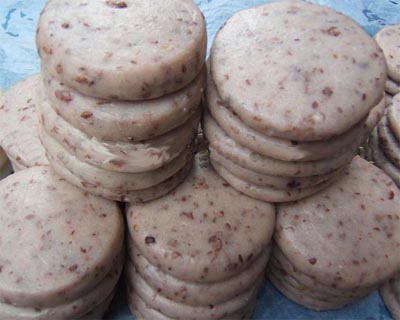 糯米洗凈,泡上一個對時后,濾干后用甑子蒸熟。然后把糯米飯盛在粑槽內用錘打爛,再捏成大小均勻的坨子,壓薄成形,這便是糍粑。待成形的粑陰干后,泡在壇子里,十天半月換一次水。這樣,可以放到端午節,經久不壞。