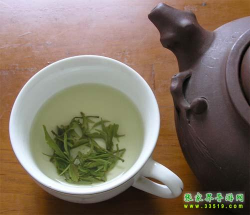 武陵源風景區(qū)盛產香茶,著名的有“青巖茗翠”、“龍蝦花茶”、“黃石寨云霧茶”、“天崇毛尖”與“索溪毛尖”等。通過1982年評比,“青巖茗翠”獲部級金杯獎,同年又獲全國首屆食品博覽會銀獎。“龍蝦花茶”也已列入全國名茶。人們經過品嘗、評比,并經茶葉專家鑒定,一致認為“青巖茗翠”、“龍蝦花茶”等具有外形美觀,內質優(yōu)良等特點。這種茶葉,從外形來看,條索緊結,圓渾彎曲,苗鋒顯露,銀毫滿披,色澤翠綠,從內質來看,清香馥郁,味醇回甘,湯色綠明,葉底均勻,飲后爽神,具有熟板栗蘭花之奇香,飲后回味無窮。據(jù)考證,“青巖茗翠”屬高山云霧茶一類。自古道:“高山出好水,云霧育佳茶”。黃石寨枇杷界海拔1000多米,氣候溫和,云霧繚繞,溫度適宜,因而,茶葉嫩度高,品質好。這種獨特的環(huán)境為茶葉中的氨基酸,咖啡堿等有效成分的形成和增長,提供了優(yōu)越的生長條件,而對質地粗老的纖維素的形成,則又起到了抑制作用。還有,這些山峰上日照短,直射光少,漫射光多,晝夜溫差大,土質的有機質豐富,因而結構疏松,排水又好。一切這些因素,都為茶葉的平穩(wěn)生長創(chuàng)造了良好的條件。所以“青巖茗翠”茶,就博得了各地名家的一致好評。湖南省茶葉學會秘書長、湖南農學院副教授朱先明品了這種茶以后,賦詩贊美: