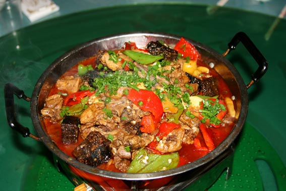 說到吃,鳳凰的苗家土雞、苗家臘肉、酸魚和血粑鴨是一定要嘗嘗的。苗家自釀的糯米酒每頓也要喝幾杯,雖然甜甜的,但后勁很大,要小心。臨走時可以從飯館買上10來斤酒和一些臘肉。早晨7~9點時,沿著東門內的東正街往里走有個吃早飯的地方,生意火爆。店主人是一對夫婦,在門口賣米線、面、包子、煎餃、豬耳朵、豬頭肉、豬肘子、鹵蛋。
